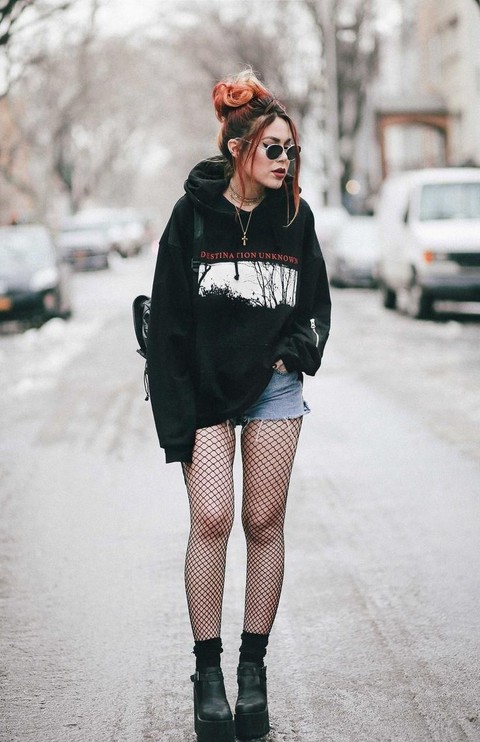 Foto: IstimewaPadukan oversized hoodie dengan fishnet tights yang kamu punya, penampilan ini cocok banget buat kamu yang lagi mau tampil nuansa grunge.