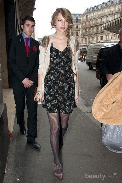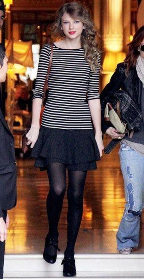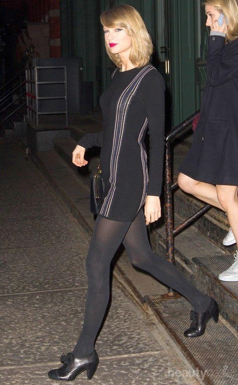 Bahkan stocking warna hitam juga membuat kaki kamu terlihat lebih ramping. Stocking juga bisa kamu gunakan di berbagai acara, mulai dari gaya casual hingga formal. Seperti padu padan ala Taylor Swift berikut yang terlihat elegan dengan stocking.