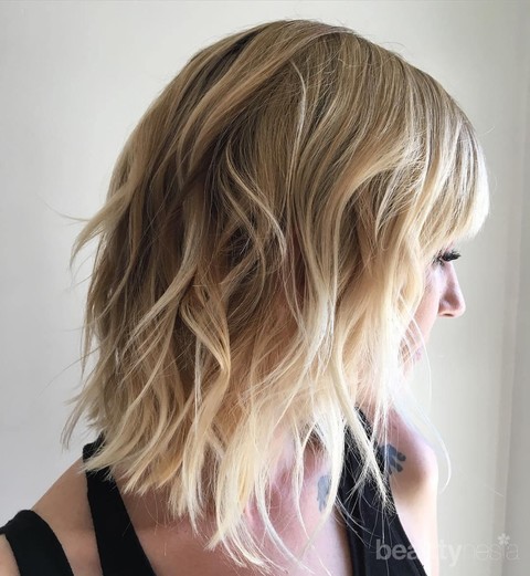 Model satu ini merupakan model bob panjang atau long bob (lob) dengan panjang sebahu. Tambahkan model layer dan wavy pada lob, dan voilà, jadilah rambut lob dengan volume ekstra pada rambut tipismu!