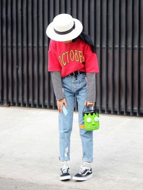 Selebgram hijab Rizki Amelia memang dikenal dengan gayanya yang nyentrik. Namun, walaupun begitu, ia tetap menjadi pilihan banyak orang untuk inspirasi berbusana, salah satunya saat ia menggunakan cuffed jeans. Lihat saja, bagaimana ia mengombinasikan cuffed jeans dengan striped blouse serta topi bulat yang membuat penampilannya semakin menarik perhatian.