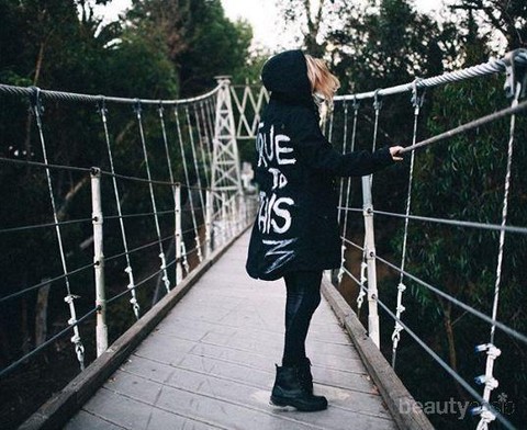 Jika kamu ingin mendapatkan gaya yang lebih edgy, kamu bisa mengikuti gaya blogger yang satu ini, yaitu Hannah Ray. Ia memadukan hoodie dengan legging dan sepatu boots serba hitam. Gaya ini simpel, namun keren banget. Kalau kamu lagi tidak ingin menggunakan pakaian yang serba hitam, kamu tinggal memilih warna lain yang kamu sukai dan mengambil inspirasi dari perpaduan pakaian tersebut. Gaya seperti ini juga cocok untuk kamu gunakan ketika jalan-jalan maupun nonton konser lho!