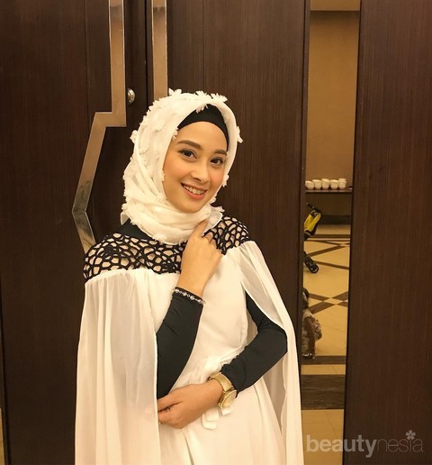 Inpirasi kedua datang dari selebgram Nina Septiani yang memakai hijab rubiah berwarna putih polos dengan corak bunga timbul di bagian luarnya dan ciput berwarna hitam di bagian dalam. Nina tampil cantik dan anggun dengan balutan dress warna putih yang di padukan dengan warna gold pada jam tangannya, serta aksesoris gelang mutiara kecil yang membuat tampilannya sempurna. Nah, cara ini juga bisa kamu praktikkan jika kamu akan datang ke sebuah pesta ya Ladies.