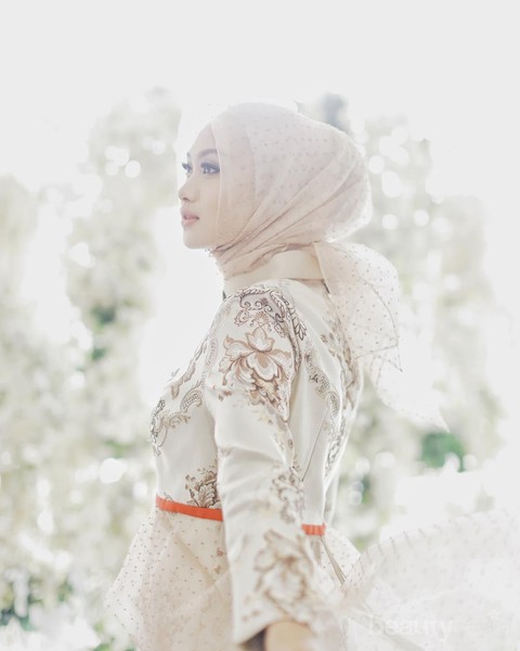 Hijab rubiah tidak hanya bisa kamu pakai untuk pergi ke kampus atau sekadar hangot bersama teman saja lho Ladies. Tapi juga bisa kamu pakai untuk pergi ke pesta. Seperti yang dilakukan oleh Indah Nada Puspita yang memilih memakai hijab rubiah berwarna peach dengan corak titik polkadot di bagian luar dan ciput kaos berwarna putih. Manggunakan dress dengan warna senada dan sedikit aksen kain rubiah di bagian luar menjadikan Indah tampil semakin cantik dan anggun.