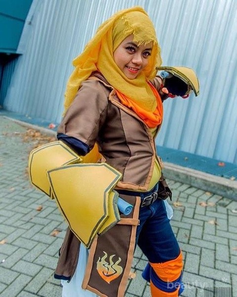 RWBY adalah animasi buatan Amerika dengan gaya ala Anime dengan berbahasa Inggris, dan grafik animasinya 3D. Nah, salah satu tokoh dalam anime ini adalah Yang Xiao Long adalah anggota keempat Tim RWBY, adalah seorang gadis berambut kuning dan kakak tirinya Ruby. Dia bersenjata sarung tangan senapan kembar disebut Ember Celica. Nah, gaya hijab cosplay Yang Xiao Long ini juga banyak digemari oleh hijabers muda di Indonesia lho, ladies.
