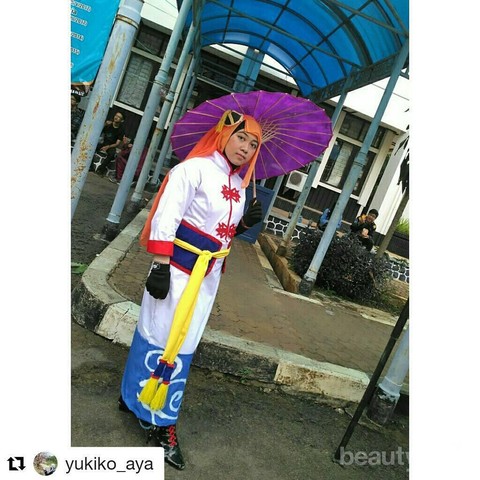 Gaya hijab kali ini menampilkan tokok anime Jepang yakni Kagura yang berasal dari Gintama: The movie : Kanketsu-hen - Yorozuya yo Eien Nare. Perpaduan baju ala Jepang dan hijab berwarna orange yang disesuaikan dengan warna rambut tokoh Kagura dalam anime tersebut. Wah, Beautynesian ada bisa menirukan gaya ini?