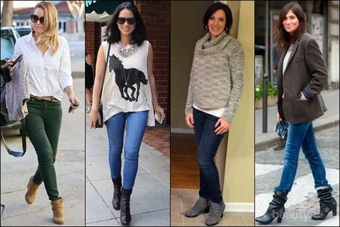 Skinny jeans adalah fashion item yang dapat dipakai dengan bermacam-macam outfit. Jeans juga bisa dipadukan dengan bermacam-macam sepatu, mulai sneakers, wedges, boots, flat shoes hingga high heels. Sebaiknya pilih jeans yang nyaman dipakai, dan sesuaikan warnanya sesuai outfitmu. Jeans biru atau hitam adalah pilihan warna yang netral.