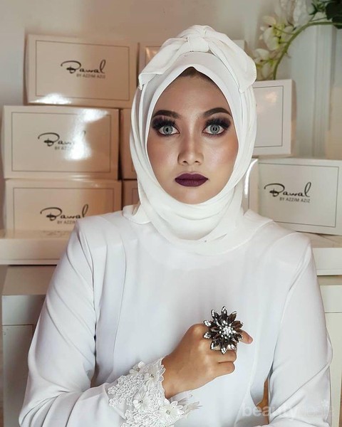 Foto: https://www.instagram.com/azzim_aziz/Bentuk hijab ini memang terinspirasi dari bentuk pocong. Apa sih kesan yang kamu dapatkan ketika mendengar kata 'pocong'? Tentunya kita akan langsung teringat dengan orang yang meninggal atau bahkan hantu. Seolah untuk mendukung kesan seram, sang desainer mendandani model hijab pocong ini dengan baju putih dan make up yang bold sehingga terkesan seram. Mulai dari baju putih, gaya smokey eyes, blush berwarna gelap, hingga bibir berwarna burgundy semakin membuat model hijab ini terlihat seram.