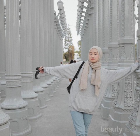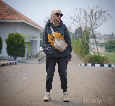 Kamu juga tidak perlu ragu, hoodie jumper cocok dipadukan dengan hijab. Zaskia Adya Mecca terlihat fashionable memadukan hijab dengan hoodie jumper miliknya tanpa perlu khawatir tampak aneh dan terkesan lebih berisi. Ditambah kacamata dan waistbag yang seragam warnanya dengan hijab membuat Zaskia tampil beda.