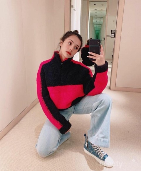 Berhasil tampil stylish dan simple. Beby Tsabina rupanya memadukan hoodie jumper dengan celana boyfriend. Warna jumper yang mencolok terlihat cocok dengan celana yang dipilih. Sementara untuk alas kaki, Beby menggunakan sneaker dengan sedikit motif.