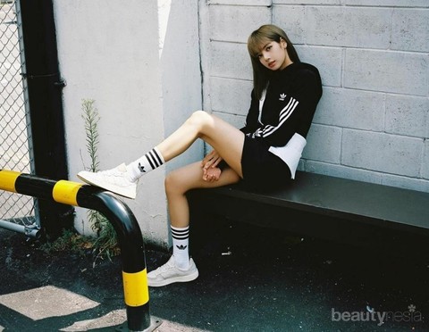 Tampil dengan keseluruhan warna hitam putih, style Lisa Blackpink ini cocok untuk yang ingin tampil modis ketika olahraga. Selain celana panjang, hoodie jumper juga bisa digunakan dengan celana pendek. Tidak perlu bingung memainkan banyak warna, Lisa tampak keren.