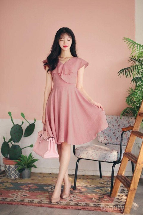 Foto: IstimewaTak kalah dengan floral look, dress dengan warna pink pastel bisa juga membuat tampilan kamu semakin girly. Seperti yang kita tahu, warna pink memang identik dengan perempuan, Beautynesian. Warna pink pastel membuat kamu terlihat cute dan juga chic.