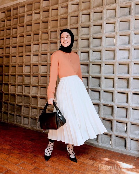 casual. Warna yang ditampilkan sangat kalem sehingga kamu bisa berkreasi dengan kaos kaki polkadot dan hijab berwarna gelap.