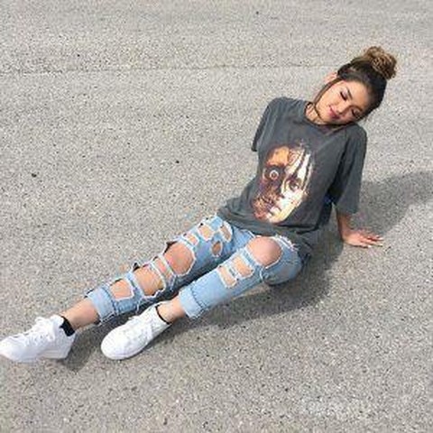 Buat kamu yang ingin tampil kasual namun tetap kelihatan keren, kamu bisa mix and match ripped jeans kamu dengan kaos oversized. Lalu kamu bisa memadukannya dengan sneakers kesukaanmu. Gaya seperti ini memang terlihat santai, tapi meskipun santai kamu tetap terlihat penuh gaya karena ripped jeans yang kamu gunakan. Gaya seperti ini cocok untuk kamu yang lagi mau pergi santai dan jalan-jalan bareng teman. Yang pasti pakaian ini nyaman banget untuk kamu gunakan.
