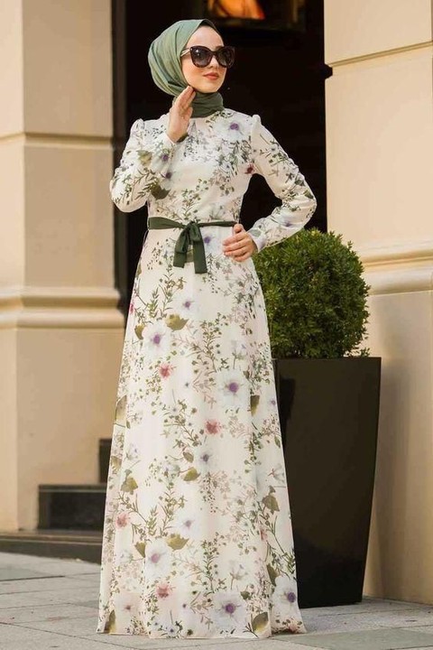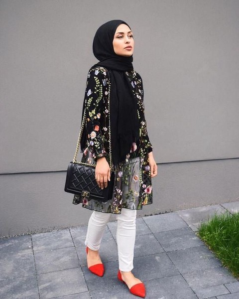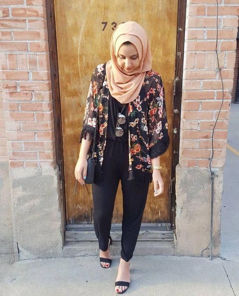 Foto: https://id.pinterest.com/Look ini bisa kamu pilih jika tidak ingin menggunakan warna hijab yang terlalu gelap. Jika floral dominan menggunakan warna hitam, maka kamu bisa pilih gunakan warna sesuai motif bunganya, yaitu orange. Cukup gunakan dengan model hijab sesimple mungkin. Dan usahakan juga tidak terlalu ramai, karena akan mempengaruhi look Ladies juga.