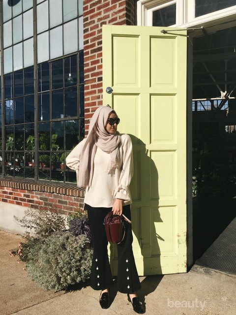Nah, pashmina hijab ini memang biasanya telah memiliki sedikit tekstur. Walaupun begitu, kamu bisa menambahkan unsur dalam penampilan kamu dengan menggunakan fashion item yang memiliki detail unik. Misalnya, kamu bisa gunakan atasan dengan detail bell sleeves. Dengan detail seperti ini, penampilan kamu menjadi lebih hidup dan tidak membosankan. Beautynesian bisa juga menggunakan bawahan dengan detail yang unik, seperti button pants di atas. Dengan begini, penampilan kamu tetap stylish yang tidak berlebihan.