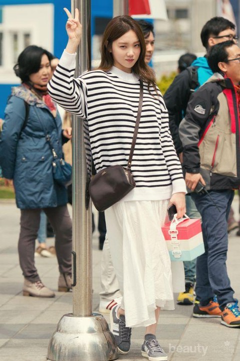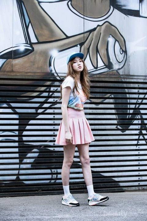 Foto: https://id.pinterest.comYuk cobain style Lee Syung Kyung yang satu ini. Padu padan antara t-shirt dengan mini skirt bisa bikin tampilan kamu jadi girly. Meskipun untuk urusan sepatu, ia memilih sneakers dan juga melengkapi tampilan dengan topi yang lebih cool.