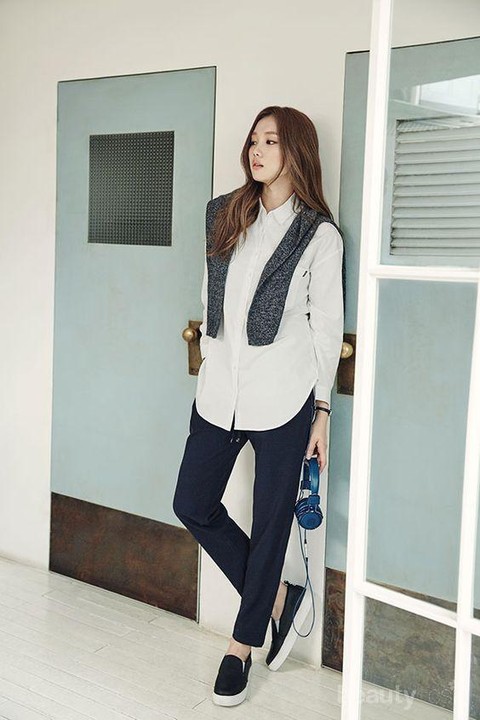 Foto: https://id.pinterest.comSungkyung juga sering tampil dengan pakaian basic, seperti kemeja putih polos dengan celana panjang saja. Selain kaos, ternyata kemeja juga sering menjadi andalannya dalam sehari-hari. Wah meskipun simpel tapi super cool ya!