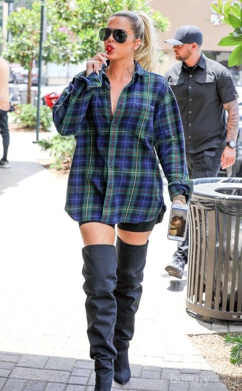 Foto: IstimewaKhloe Kardashian adalah Kardashian sisters yang memiliki badan lebih besar dari saudaranya yang lain. Namun, hal ini enggak menjadikan ia enggak tampil stylish. Kamu bisa mencontek outfinya dengan memakai kemaja oversized yang agak panjang sehingga celana pendek kamu enggak terlalu terlihat. Lalu outfitnya makin keren ditambah sepatu boots yang panjangnya hingga paha.