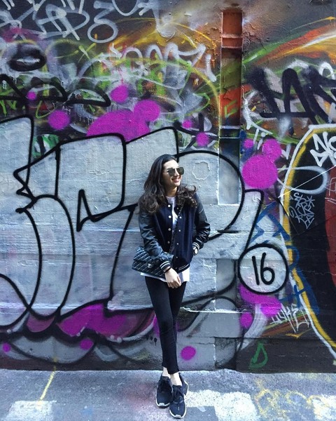 Foto: https://www.instagram.com/shakillaastari/Sekarang giliran baseball jacket warna hitam jadi pilihan Shakilla, dipadukan dengan t-shirt putih, jeans hitam dan masih dengan black sneakers.