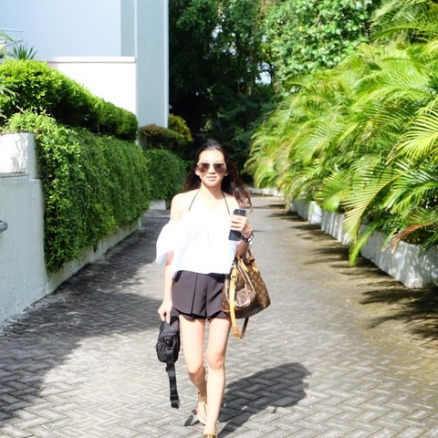 Foto: https://www.instagram.com/shakillaastari/Selanjutnya Shakilla memadukan roknya dengan white blouse dengan kerah sabrina. Tidak lupa juga kaca mata hitam untuk menyempurnakan penampilannya.