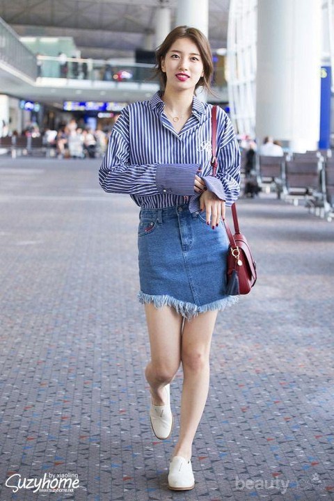 Pakaian berbahan denim atau jeans selalu bisa kamu andalkan sebagai pelengkap gaya chic sehari-harimu. Jaket jeans, kemeja jeans, celana jeans, hingga rok jeans seperti yang dikenakan Suzy ini bisa dengan mudah membuatmu siap tampil keren kapanpun dan dimanapun. Selain mencoba rok denim ala Suzy, kamu juga bisa mencoba rok denim dengan aksen kancing depan atau front button denim skirt agar lebih trendy!