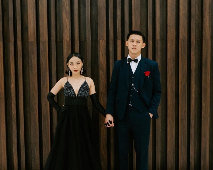 Sementara Jevin tampil classy dengan setelan jas berwarna hitam. Ia memilih kemeja warna putih sebagai inner. Sepatu kulit dan dasi kupu-kupu berwarna hitam membuat penampilannya semakin stand out.