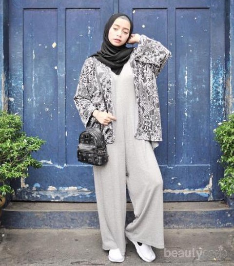Si imut Joyagh selalu menarik perhatian dalam setiap penampilannya. Lihat saja gayanya saat memadukan outer bermotif perpaduan warna grey tua dan muda dengan jumpsuit dengan warna senada. Untuk menyempurnakan penampilannya, ia memilih menggunakan sport shoes berwarna putih serta tas dan hijab warna hitam. Kekinian banget bukan?