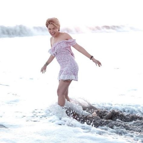 Gaya Seksi Nikita Saat Bermain Air di Pantai