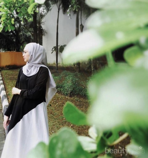 Tampil simpel dengan mengenakan waju berwarna hitam dan putih juga bisa membuat kamu tidak hanya tampil elegan namun juga feminim. Seperti gaya Indah satu ini, Ia cukup memadukan warna dress hitam dan putih dengan hijab warna ke abu-abuan yang membuat tampilan Indah Nada Puspita sangat anggun. Kamu juga bisa menggunakan gaya seperti ini untuk tampilan sehari-hari atau hangout dengan sahabat.