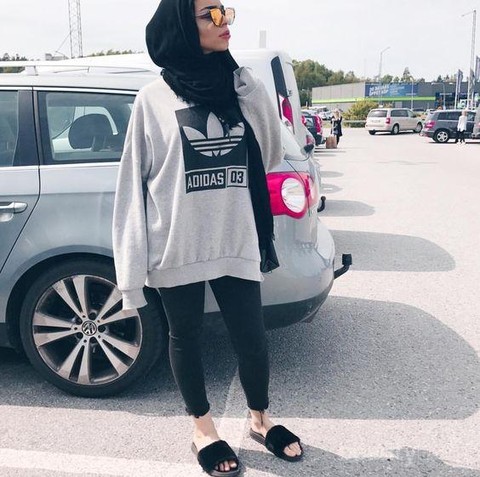 Satu lagi nih yang bisa membuat sporty style hijabers: oversized sweat shirt! Biasanya, orang yang berolahraga suka mengenakan sweat shirt untuk sekadar menutupi pakaian olahraga mereka. Namun, saat ini weat shirt juga sudah diperhitungkan sebagai fashion item yang kece banget, lho! Kamu tinggal mengenakan oversized sweat shirt to get an instant sporty look.