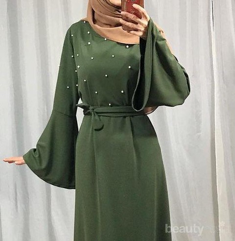 Terakhir, untuk tampilan gamis pesta, pilihlah model simpel dengan detail bell sleeve atau ruffle yang sederhana. Dengan begitu, tampilan gamis kamu tidak akan terlihat berlebihan dan tua saat dipakai.