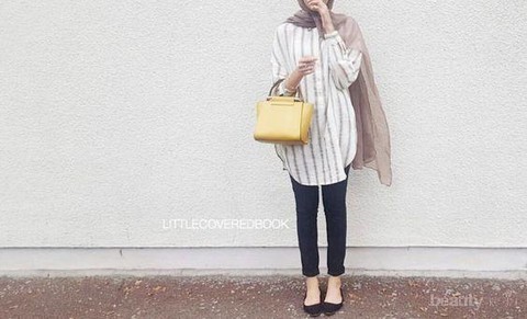 Kemeja panjang yang satu ini wajib banget untuk dimiliki oleh para hijabers. Selain modelnya simpel, kemeja panjang ini pas banget untuk kamu yang ingin pakai skinny jeans tanpa memperlihatkan lekuk bokong dan panggul.