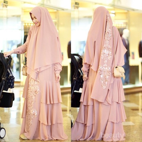 Warna lembut dan polos membuat syar'i set berlayer ini tampil lebih menawan dan elegan.