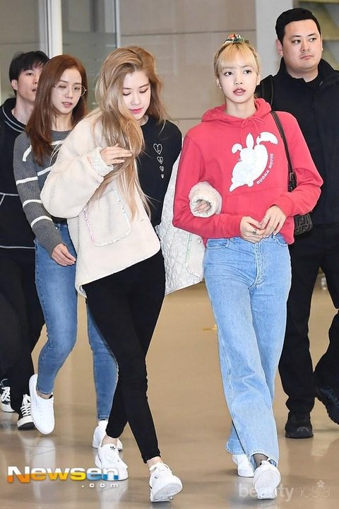 Setelah konser di Taiwan dan pasti menampilkan BLACKPINK Kill This Love dengan sempurna, keempatnya meninggalkan Taiwan. Sementara Jennie berangkat ke Paris untuk menghadiri Paris Fashion Week, ketiga member lainnya pulang ke Korea Selatan. Style ketiganya terlihat sangat santai.