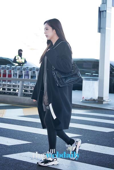 Si cantik Jisoo yang kini giliran mengenakan warna hitam senada. Terlihat lebih sporty dengan sneakers dan coatnya.