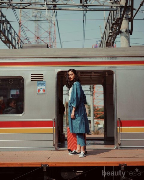 Foto: https://www.instagram.com/delladartyan/Look pertama ala Della Dartyan yang bisa kamu coba adalah dengan memadukan long outer denim dengan celana jeans. Untuk pemilihan baju bagian dalam, kamu bisa mengenakan kaos putih polos biar lebih match dengan outfit serba denim yang kamu kenakan. Kamu juga bisa mengenakan sneakers hitam supaya nyaman dan modis saat dipakai traveling.