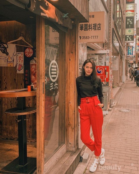 Foto: https://www.instagram.com/delladartyan/Tips memilih outfit anti norak saat pergi traveling adalah dengan mengenakan busana yang simpel dan nyaman buat dipakai. Seperti saat Della Dartyan traveling yang hanya mengenakan long neck berwarna hitam polos yang dipadukan dengan baggy pants berwarna merah.