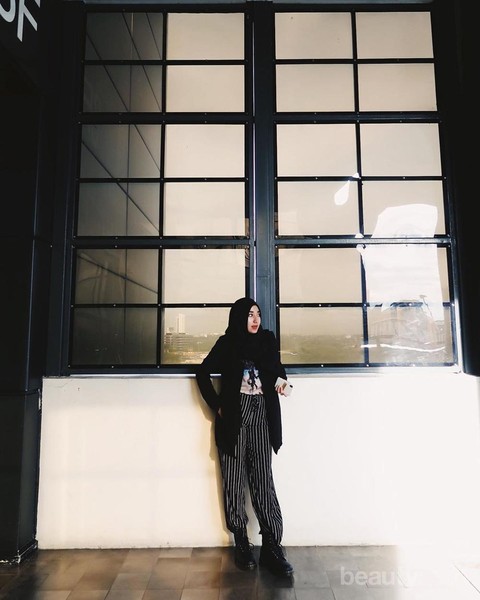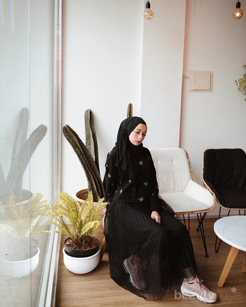 Look Stunning! Tampil kece dengan tampilan all black mulai dari hijab sampai dengan sepatu yang akan membuat kamu terlihat begitu stylish. Gaya ini cocok bagi kamu yang ingin tampil boyish dengan menggunakan warna netral seperti hitam.
