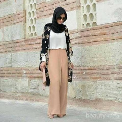 Untuk kamu yang berhijab, tentu wide leg pants will suits your outfit very well! Outer hijab cocok banget dipadukan dengan wide leg pants sehingga menghasilkan tampilan yang casual sekaligus semi-formal. Kamu bisa gunakan gaya ini saat pergi hangout bersama teman-teman ataupun saat pergi ke kampus.