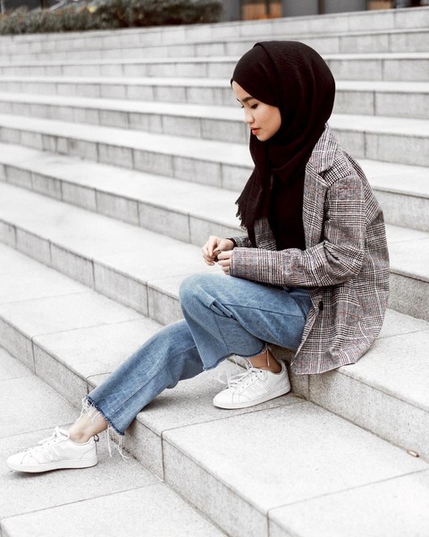 Bagi kamu yang senang dengan style hijab sederhana, namun tetap terlihat fashionable, kamu bisa banget mengenakan perpaduan ini: blazer and jeans! Yup, kedua fashion item ini bisa banget membuat tampilan kamu menjadi berbeda dan tetap fashionable. Tampilan ini juga bisa kamu kenakan untuk tampilan casual hijab sehari-hari tanpa perlu takut akan terlihat terlalu formal. Blazer memang membuat tampilan kamu menjadi formal atau bisa juga semi-formal. Nah, jeans yang kamu kenakan ini dapat menjadi penyeimbang dalam tampilan kamu sehingga tidak terlihat sangat formal.