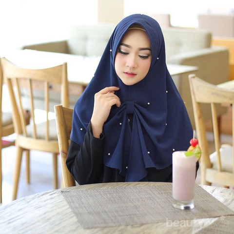 Nah, bagi kamu yang suka dengan style hijab berdetail, kamu bisa banget nih mencoba tampilan ini. Beautynesian coba pilih hijab yang memliki detail pearl di keseluruhan bagian hijabnya. Coba pilih detail pearl ini dengan jarak jarang-jarang sehingga tampilan kamu menjadi lebih klasik dan tidak berlebihan.