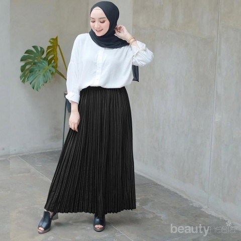 Foto: IstimewaTipe rok plisket ini akan cocok untuk apapun atasan atau outer yang kamu kenakan. Kamu bisa pilih warna hijab yang kamu suka dan akan selalu cocok. Warna basic seperti hitam adalah salah satu cara bermain warna yang aman dalam berpakaian.