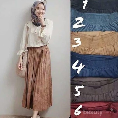 Foto: IstimewaBahan suede ini termasuk dalam jenis bahan kulit. Biasanya dari kulit sapi atau domba. Kamu bakal makin modis deh pake rok plisket bahan suede ini. Rok ini miliki texture yang lembut dan halus, selain itu bahan suede ini awet meski harus perhatian extra dalam perawatannya. Plisket bahan Suede ini juga memberikan kesan mewah dan anggun pada pemakainya. Bisa kamu kenakan kalau mau ke pesta atau acara kamus dan kantor. Kamu enggak akan kelihatan norak, dan justru malah terlihat elegan, asal jangan salah pilih hijabnya ya!