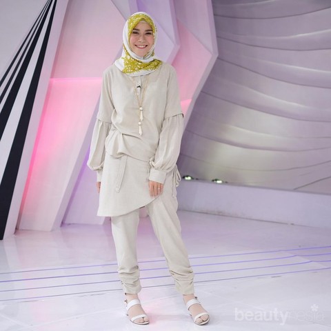 Tidak hanya untuk tampilan casual. Model hijab layering juga bisa kamu pakai untuk tampilan semi formal lyang dikenakan artis berhijab cantik satu ini. Nah, buat kamu para hijabers yang selalu kebingungan soal model hijab dengan bahan hijab untuk tampilan semi formal, kamu tetap bisa mengenakan hijab motif apapun yang dibuat model layering kemudian di padu padankan dengan busana semi formal tetap bisa membuat kamu tampil fashionable lho.