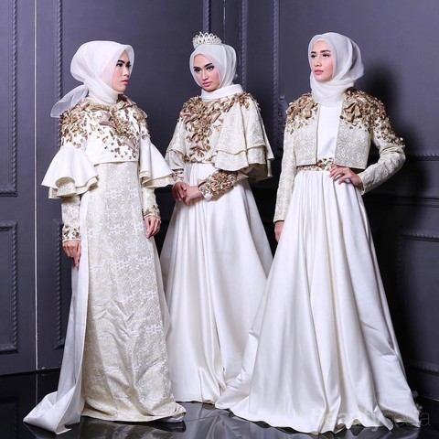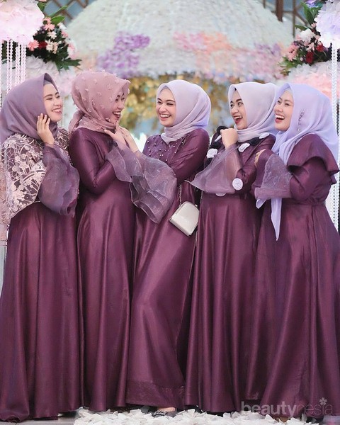 Meski kebanyakan bridesmaid berseragam kebaya hijab, tapi kamu bisa membuat seragam bridesmaid bertema royal ini, lho! Perpaduan antara kain emboss, silk, dan detail payet yang cantik serta jilbab organza membuat tampilan serba mewah. Apalagi jika kamu memilih perpaduan warna emas dan putih. Kamu akan terlihat seperti para putri kerajaan!