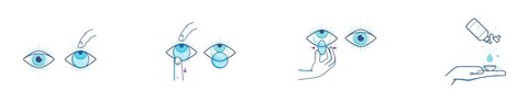 Lihat ke atas dan gunakan tangain kiri untuk menahan kelopak mata agar tidak berkedip. Lalu dengan perlahan gunakan jari telunjuk tangan kiri untuk menggeser lensa ke bagian putih mata.