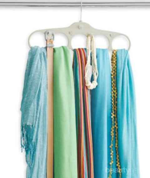 Agar tidak memakan tempat, aksesoris seperti scarf ataupun ikat pinggang juga bisa kamu kumpulkan dan gantung dalam 1 hanger besar. Lalu, gantung hanger ini di bagian gantungan baju atau di belakang lemari jika sudah tidak muat.