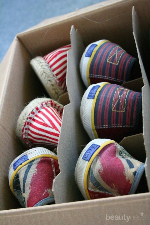 Atau simpan sepatu di dalam kotak wine bersekat.
