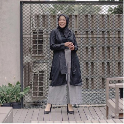 Resmi tak selalu membosankan. Contek gaya ala Fitrop yang memadukan blazer dengan jumpsuit oversize. Padukan dengan celana kulot berwarna abu-abu dan hijab warna hitam untuk melengkapi gaya monokrom. Lengkapi gaya dengan high heels yang senada dengan hijabnya,