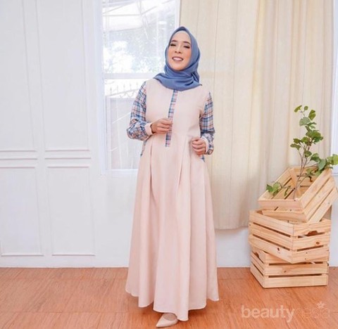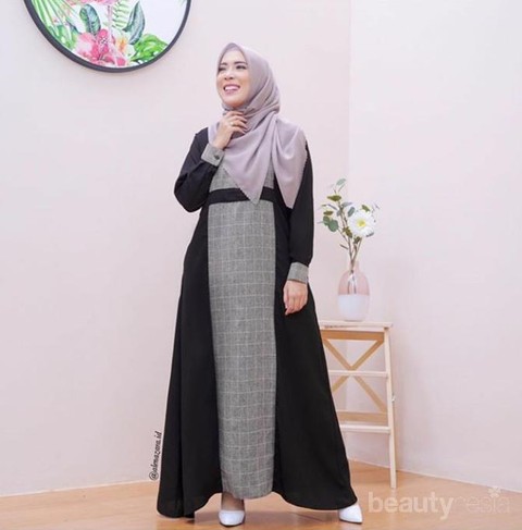Foto: https://www.instagram.com/fitropMotif kain kotak-kotak memang fleksibel. Selain digunakan pada kemeja atau rok, motif ini ternyata juga cocok digunakan sebagai detail pada gamis dengan bawahan loose, seperti milik wanita kelahiran Bandung ini. Penambahan detail garis panjang di bagian dada membuat gamis ini tak terkesan polos.